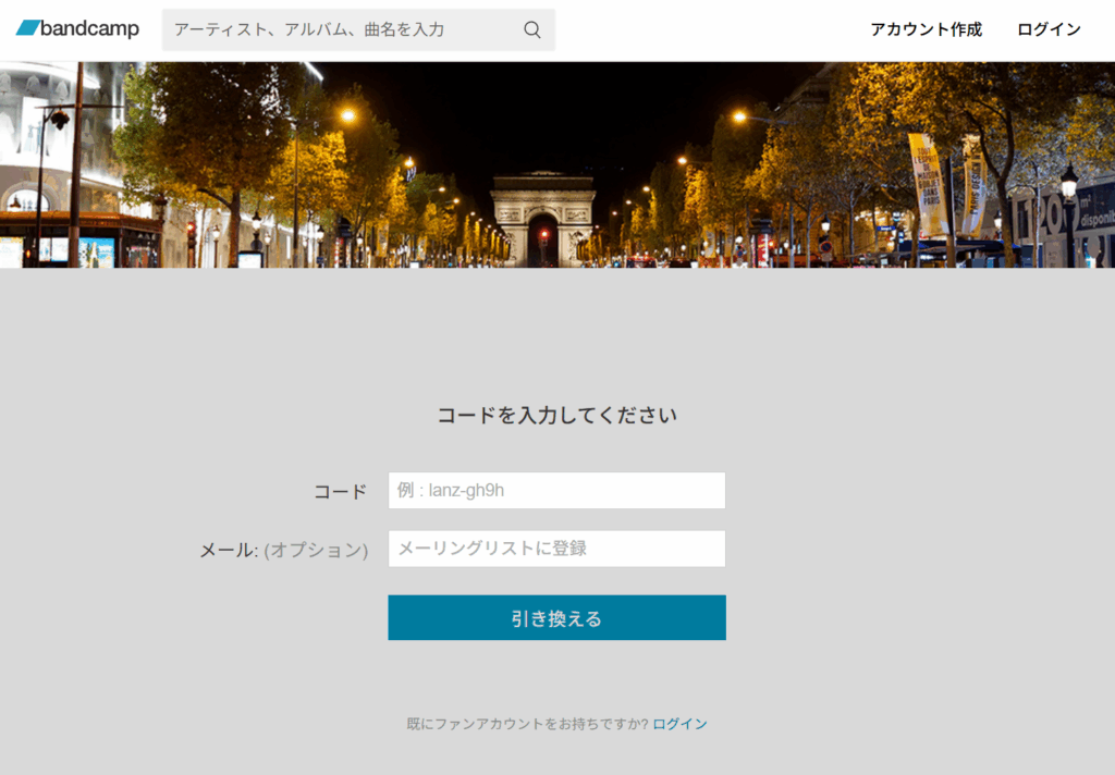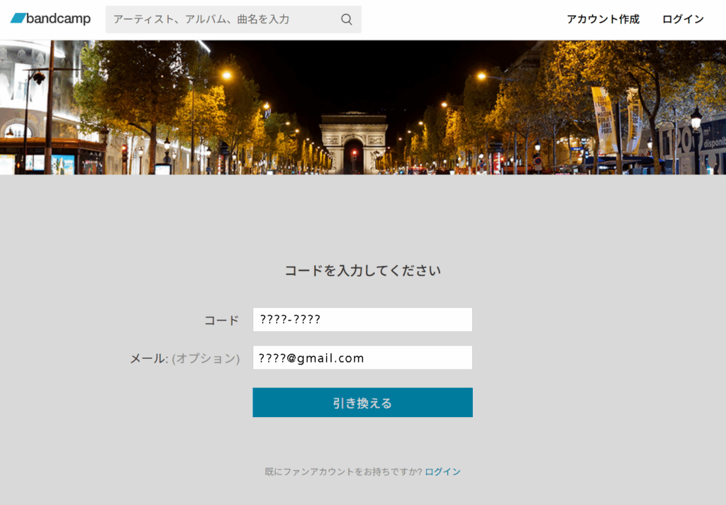 すでにbandcampのアカウントを持ちの場合はログインした状態にて引き換えを行うことをお勧めします。
