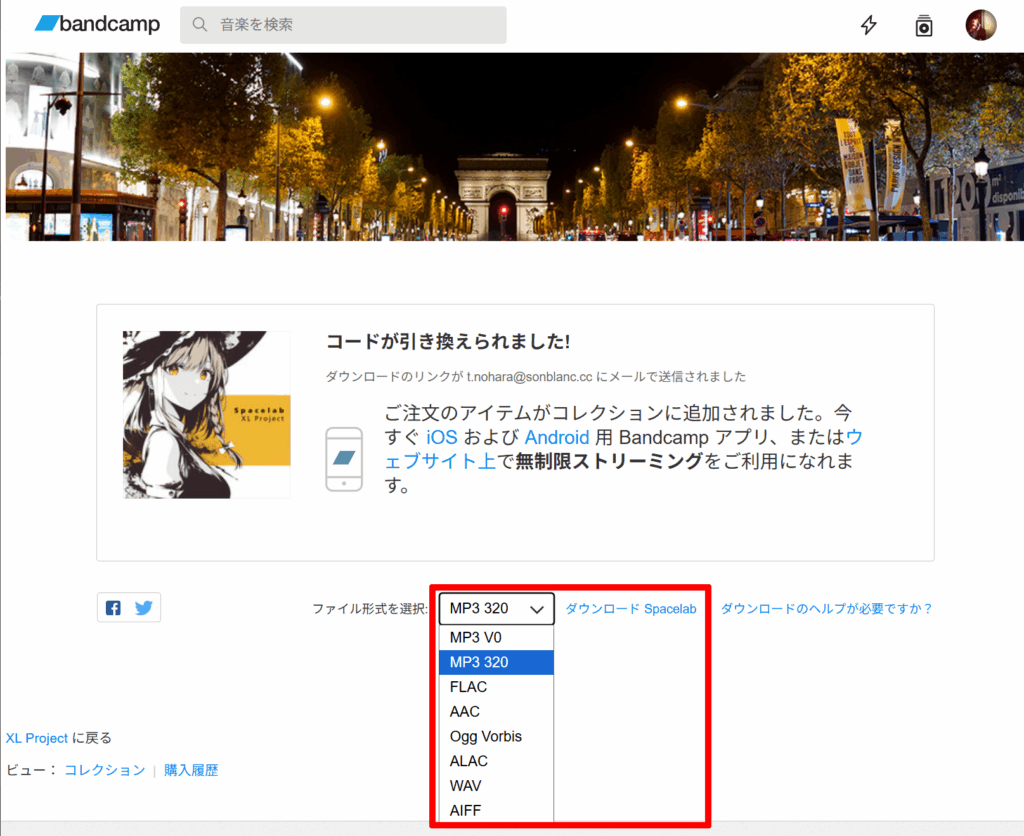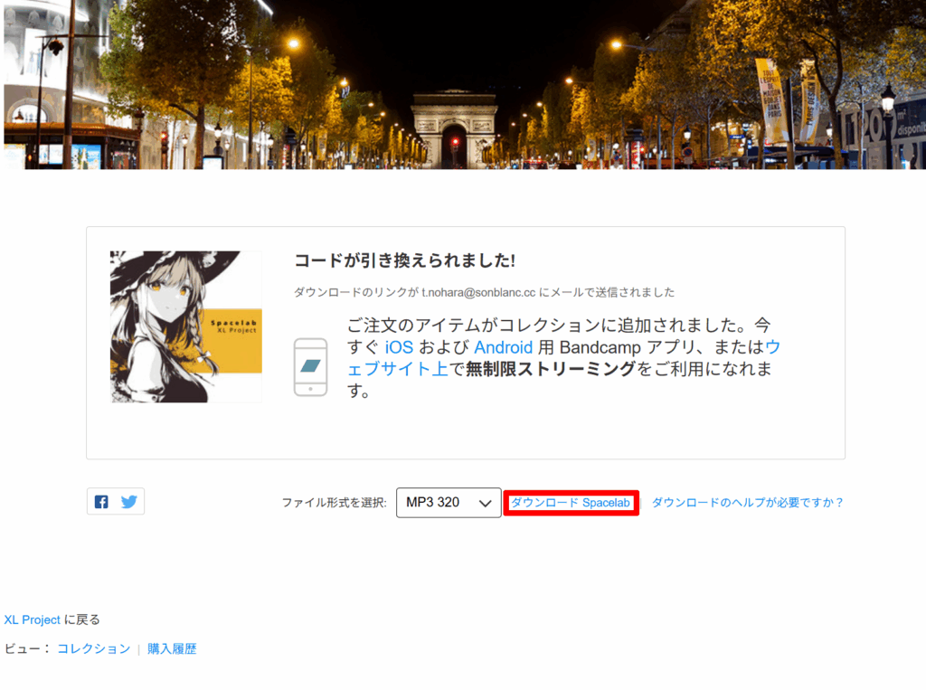 なお、すでにbandcampにログインされている場合はご自身のアカウントのコレクションにも追加されますので、ストリーミング再生することができます。