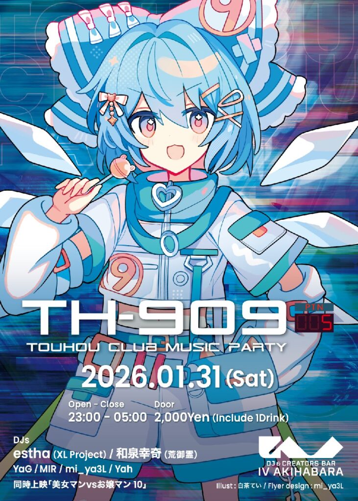 2026年1月31日に秋葉原の東方クラブイベント TH-909 、また2026年2月28日に名古屋 新栄の東方Lounge Party Bar鈴奈庵に出演します。ぜひお越しいただければと思います。